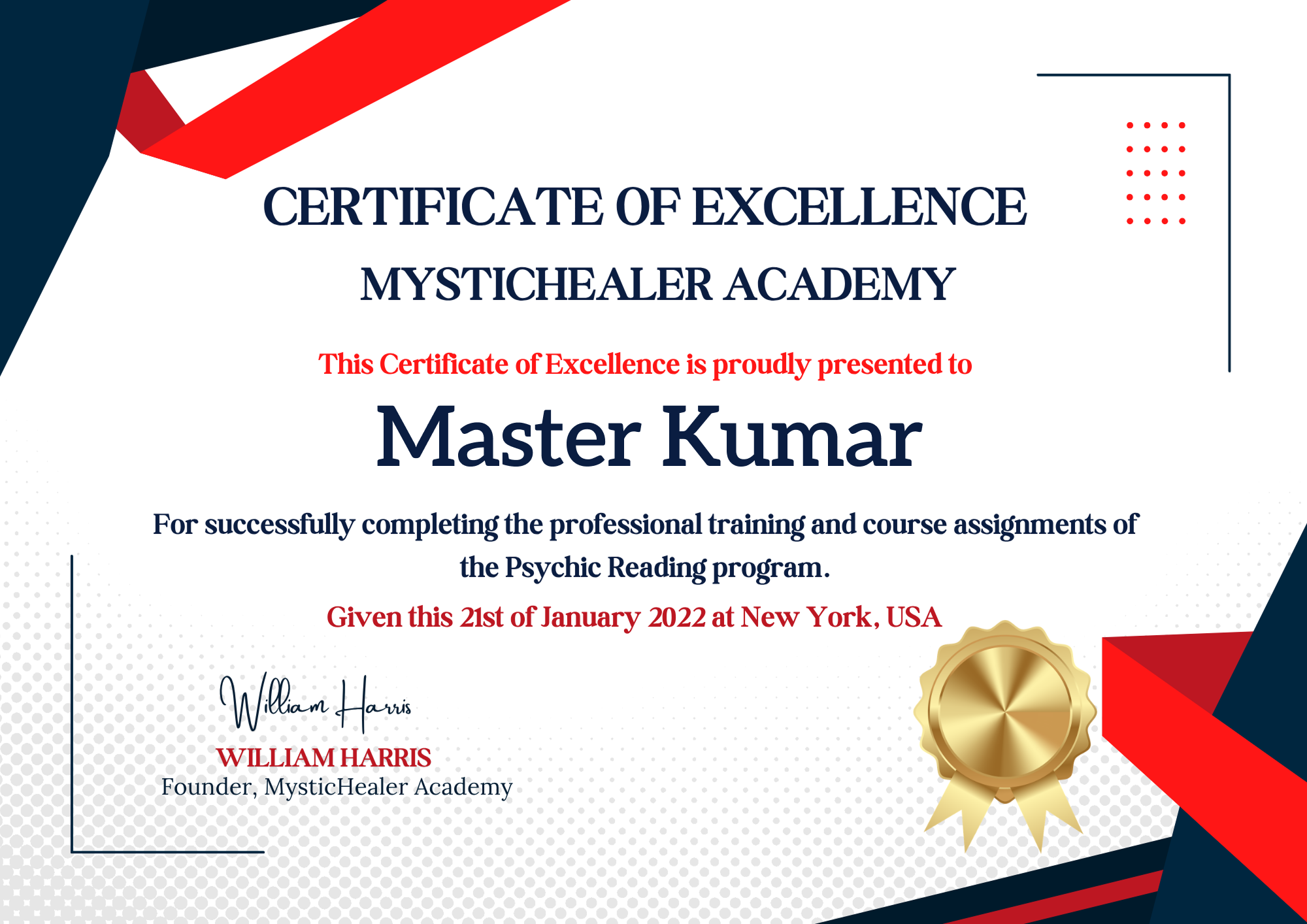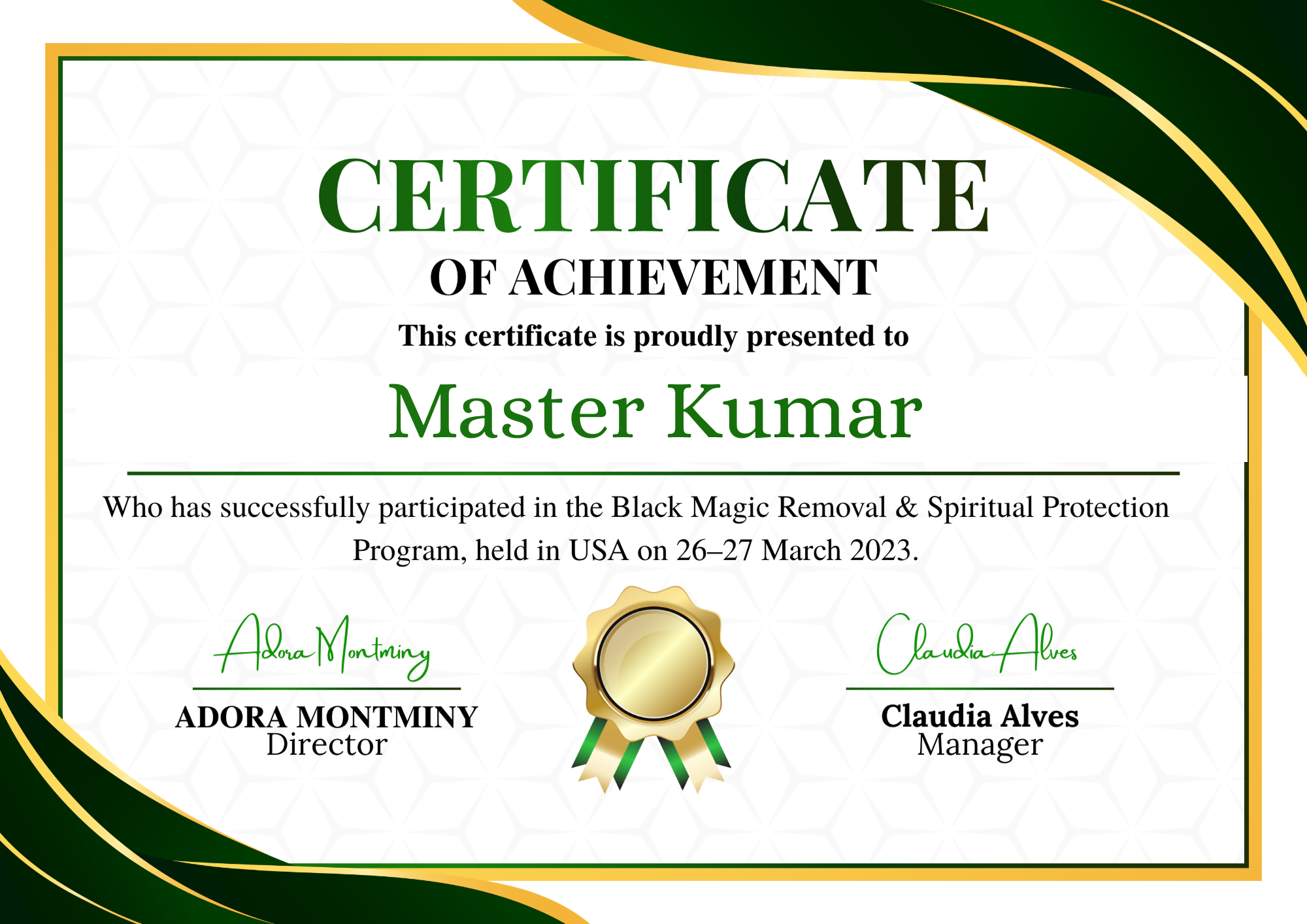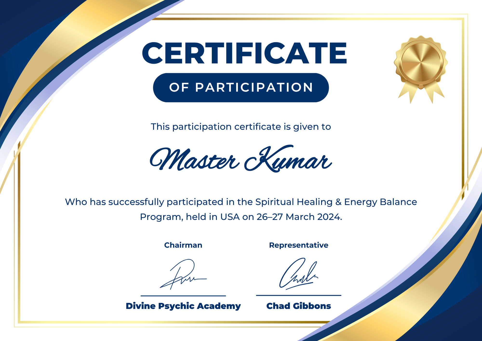 Certificate of Divine Excellence – Master Kumar